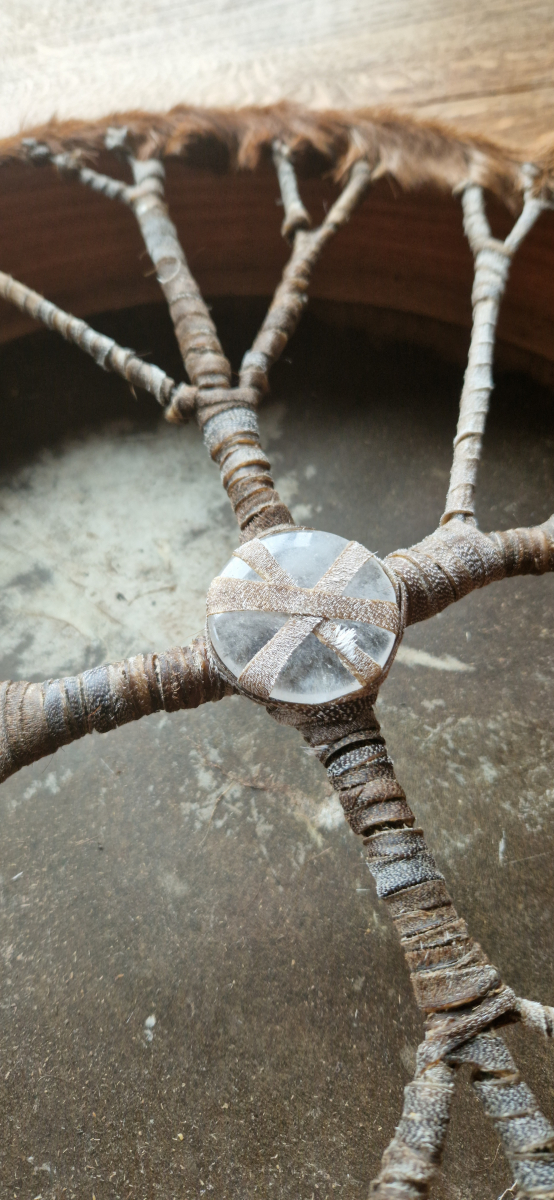 Ján Petrovič does not rush when creating this drum:) He precisely and intuitively selects the skin, wood, and stone to ensure the best possible combination. He meditates during the creation process, giving thanks to Mother Earth for the wood and animal skin.